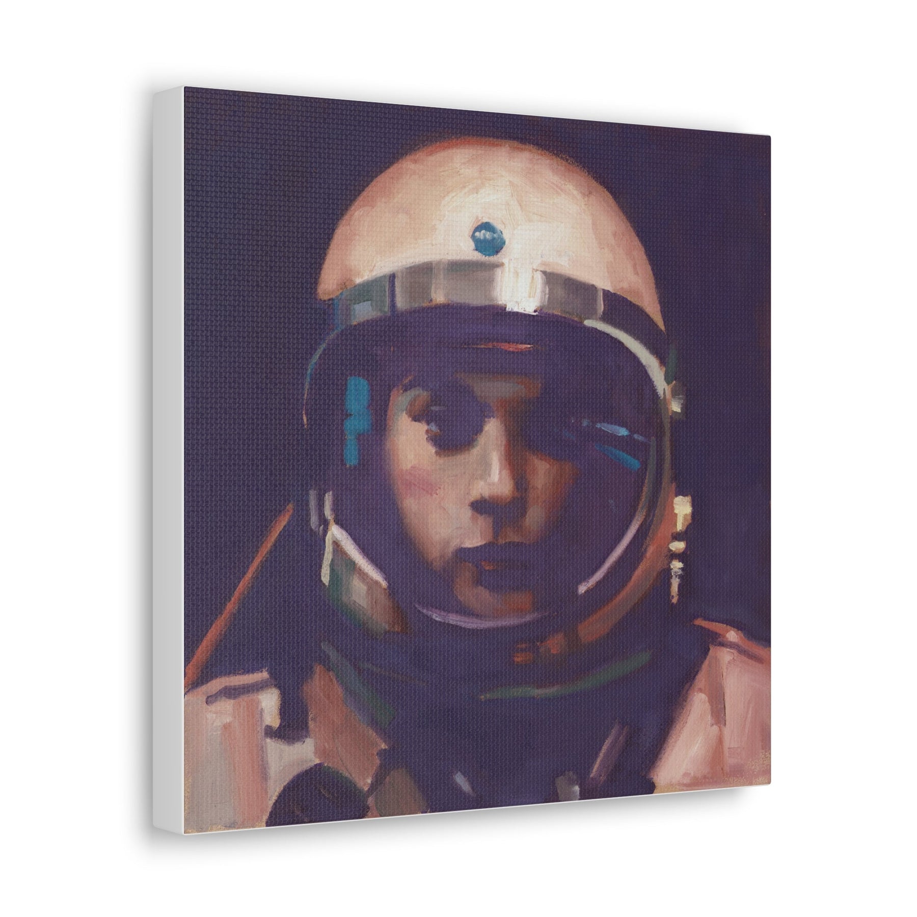 From an original oil painting by Adam B. Shaw, a striking satin-finish canvas that brings quiet wonder to any wall. Rendered in deep, moody tones, the astronaut portrait feels intimate — like catching someone lost in thought before lift-off. The semi-gloss surface picks up rich brushstroke textures and keeps colors vivid, while the clean pine frame and narrow depth let the image sit close to the wall, turning a living room, studio, or hallway into a small, reflective gallery. Comes with an easy self-assembly hanging kit so you can position it exactly where the light flatters the helmet and the shadows tell the story.