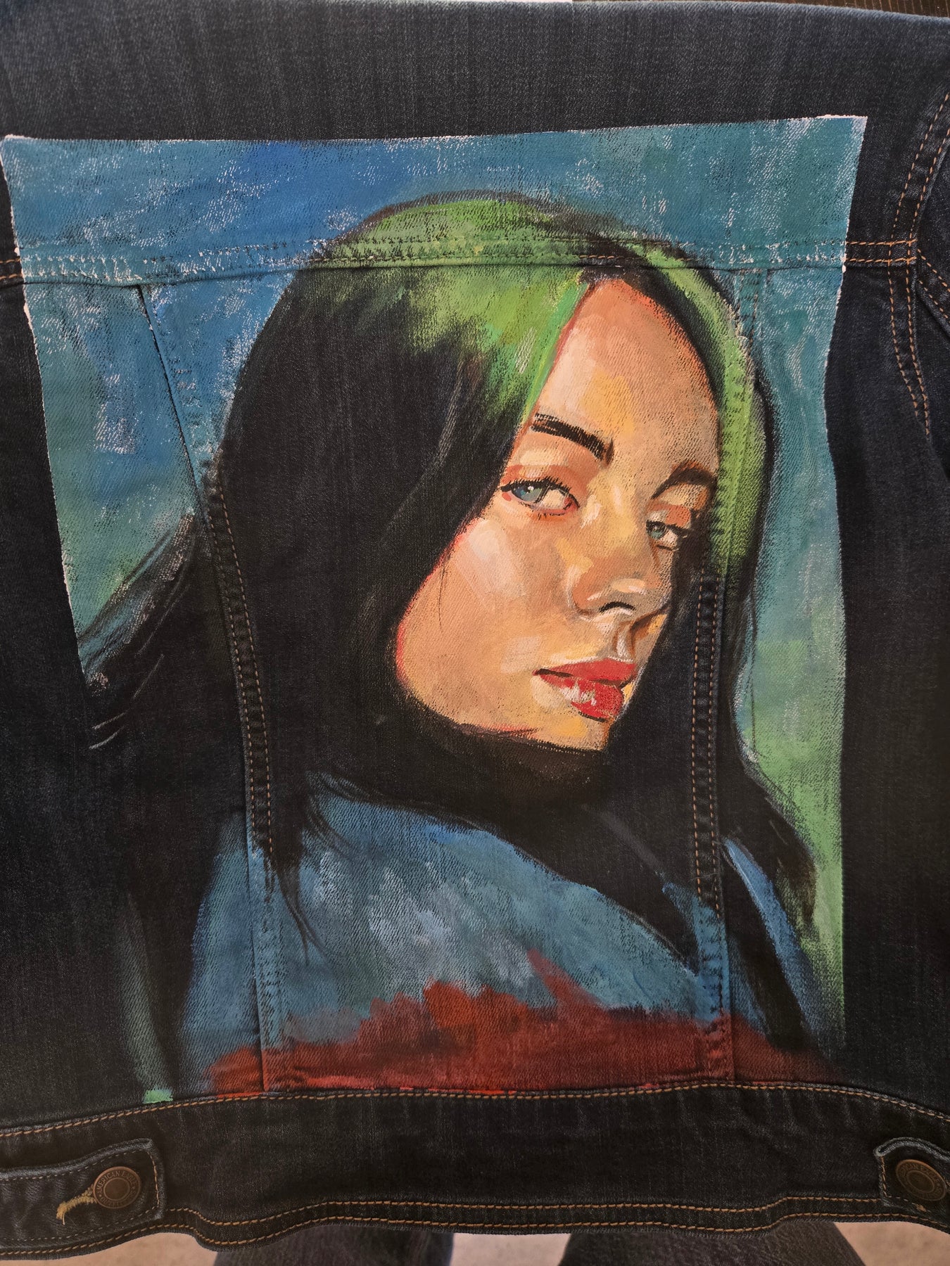 Billie Eilish Custom Denim Jacket – Hand-Painted Fan Art Streetwear