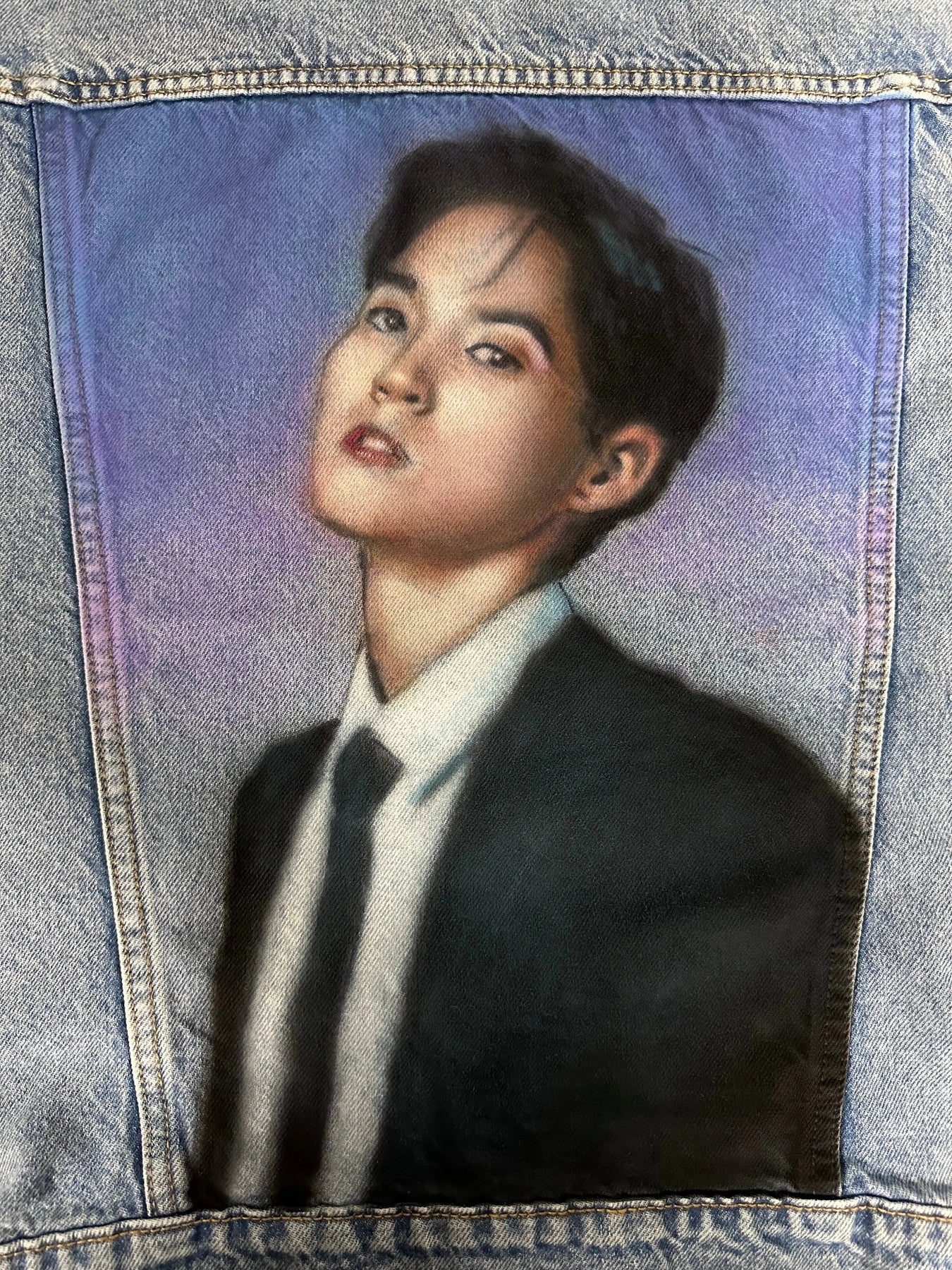 Hand-painted Woosung portrait on heavyweight vintage denim