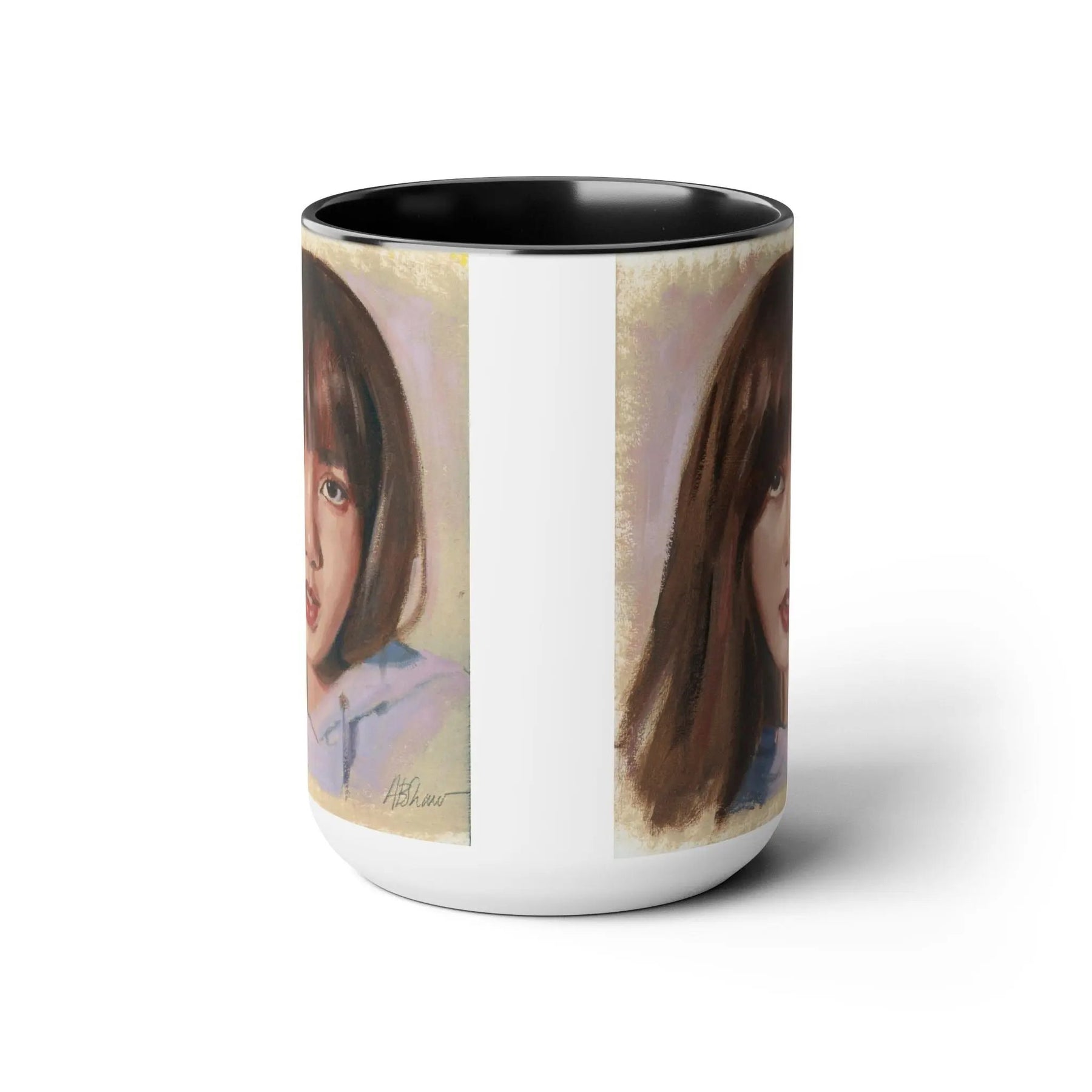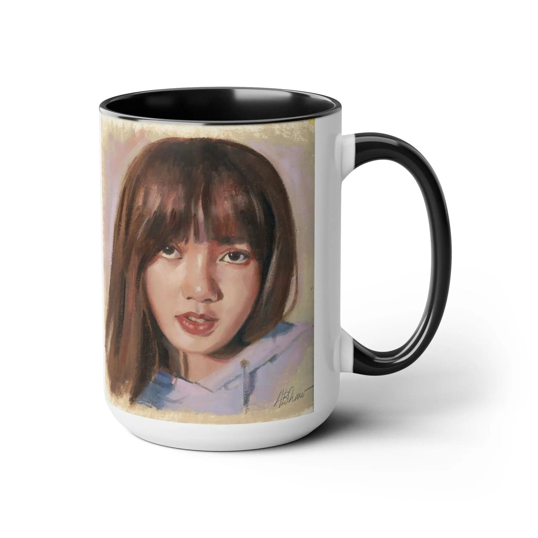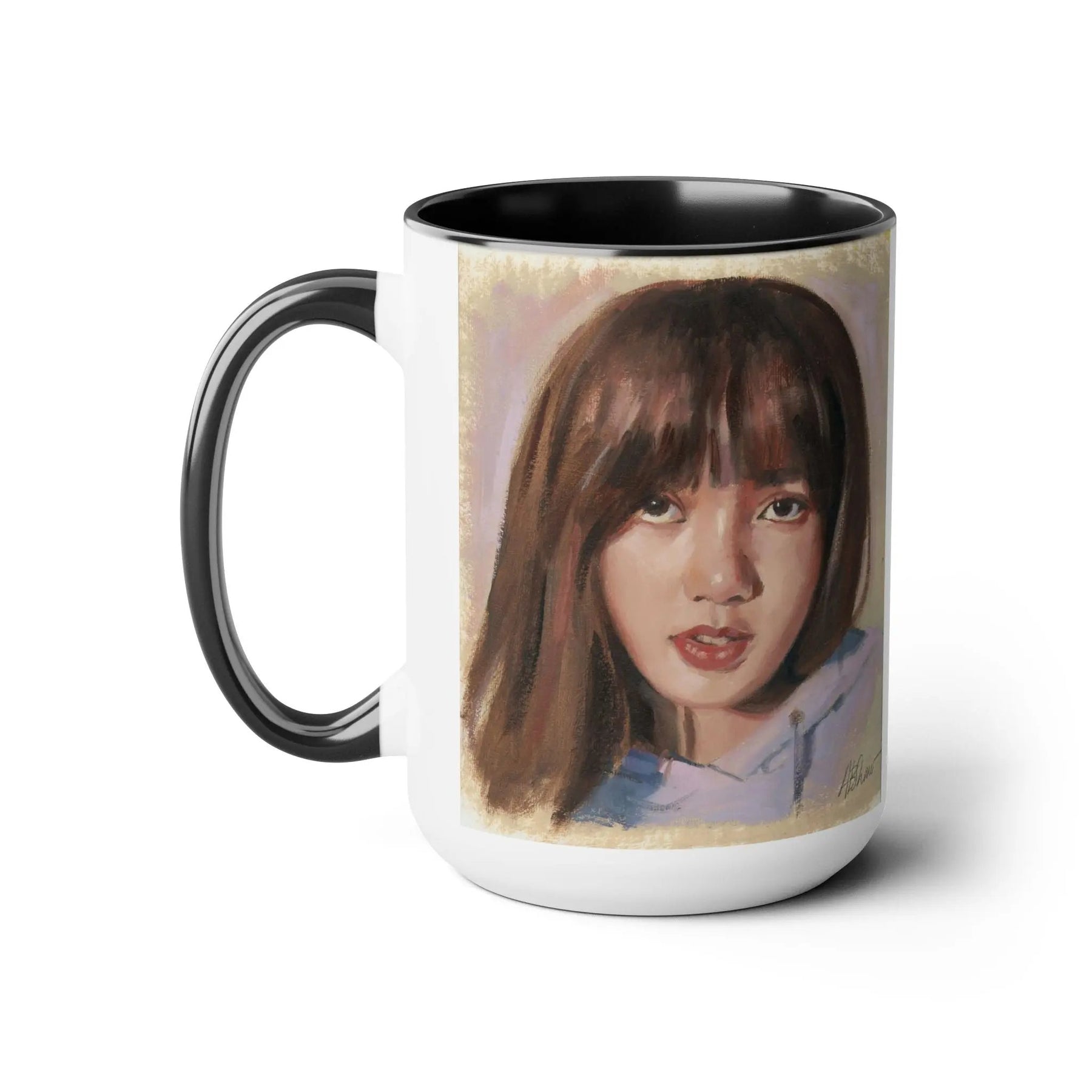 Beautiful original painting by Adam Benet Shaw featured on this gorgeous two-tone coffee mug. Start the day just right with LaLisa at her cutest. .: Material: 100% ceramic .: One size: 15oz (0.44 l) .: Lead and BPA-free